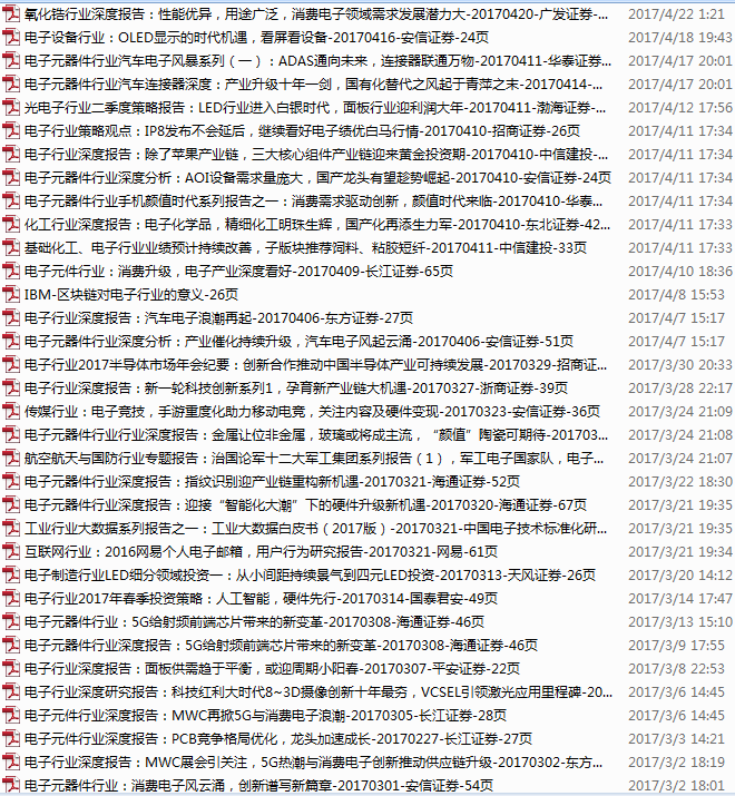 电子行业资料包,374份,更新至2017.12.11