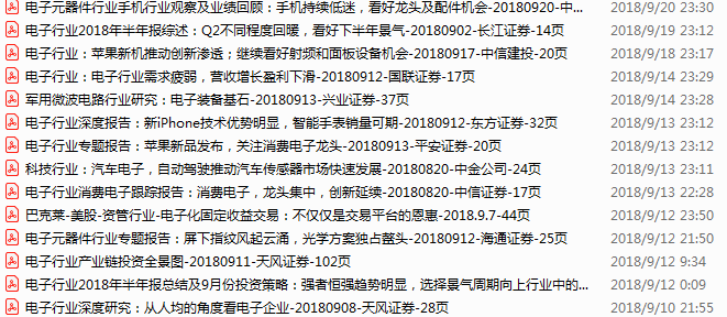 电子行业资料包,月度新增53份(2018.9.10-10.21)