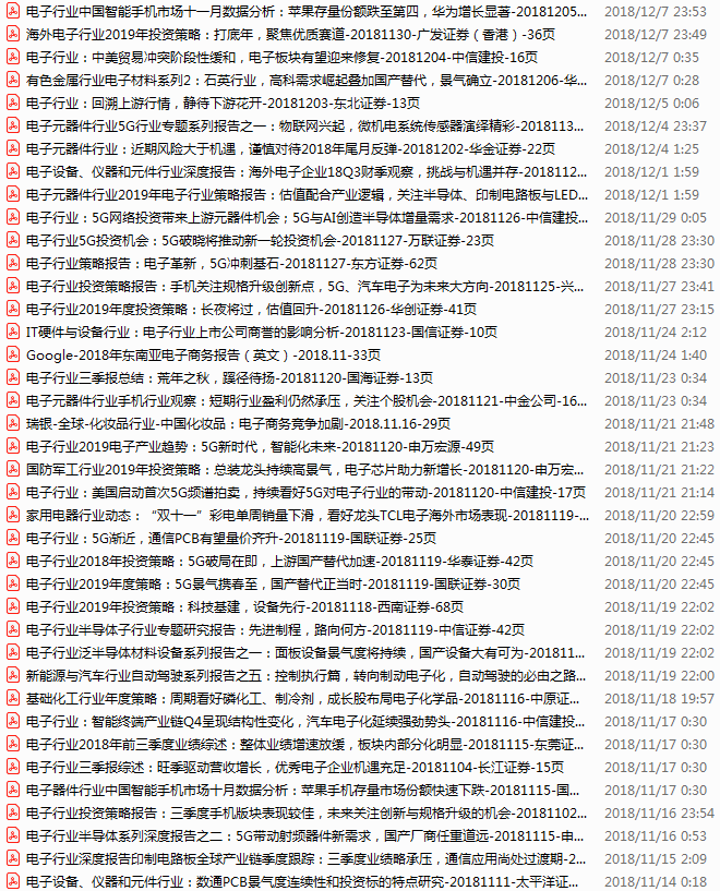 电子行业资料包,月度新增42份(2018.11.12-12.10)