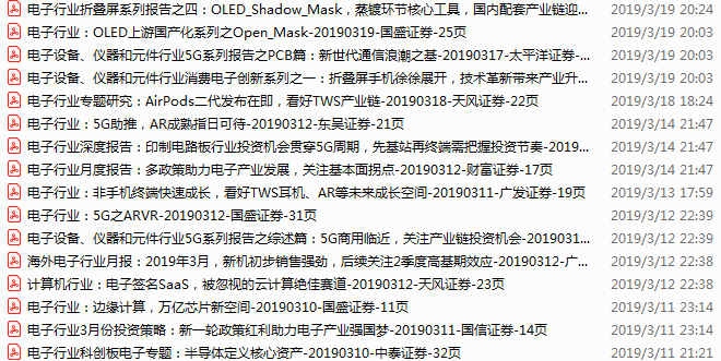 电子行业资料包,月度新增54份(2019.3.10-4.8)