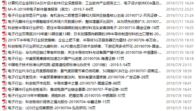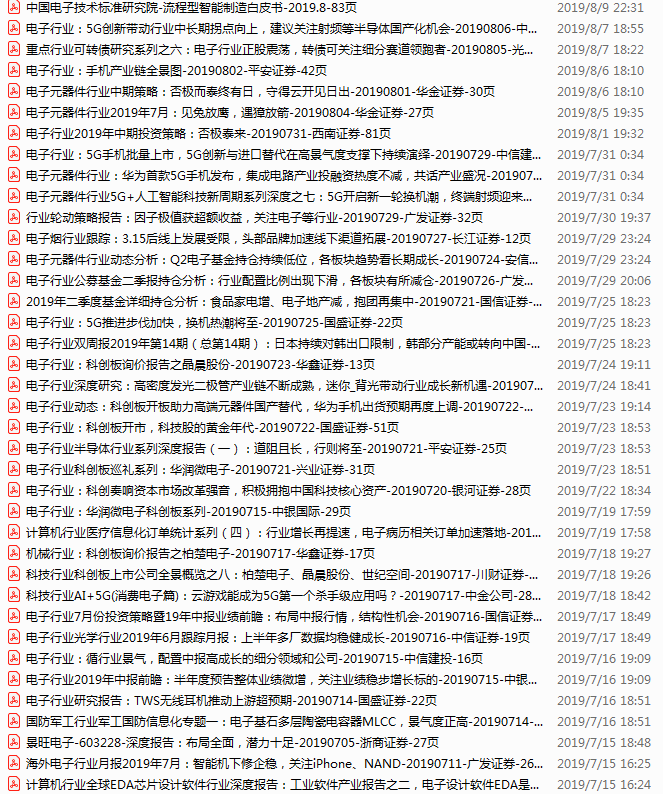 电子行业资料包,月度新增55份(2019.7.5-8.9)