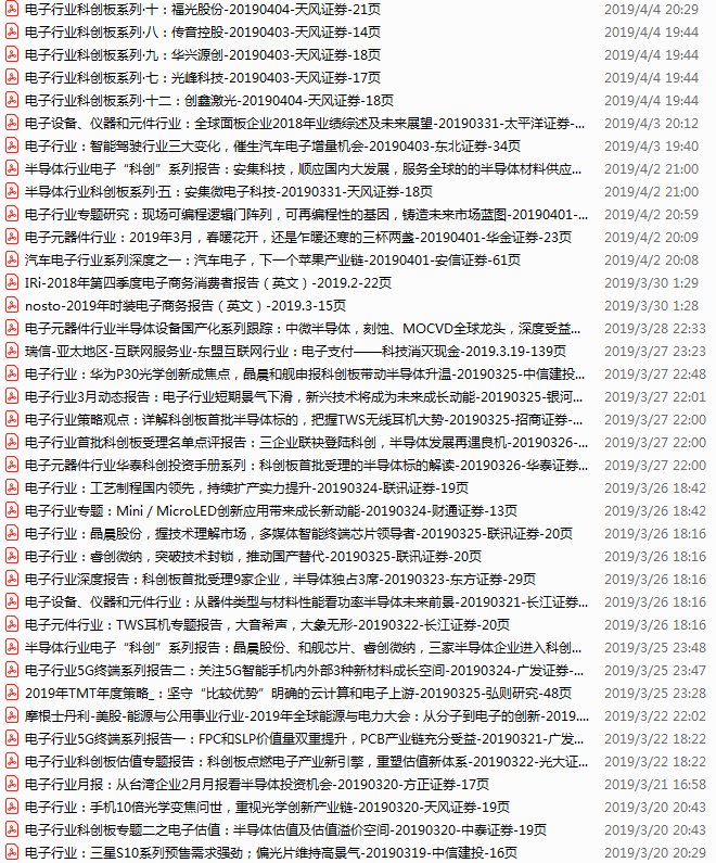 电子行业资料包,月度新增39份(2020.4.4-5.2)