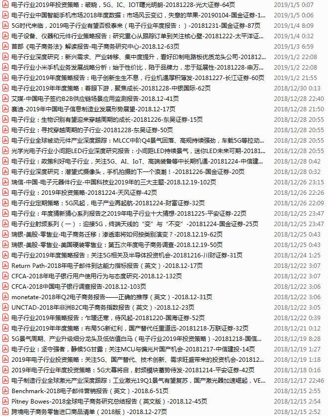 电子行业资料包,月度新增48份(2018.12.10-2019.1.7)