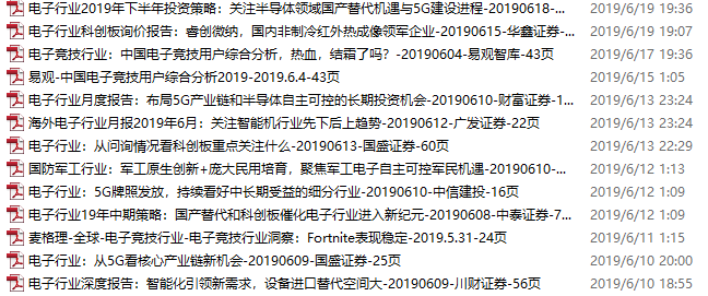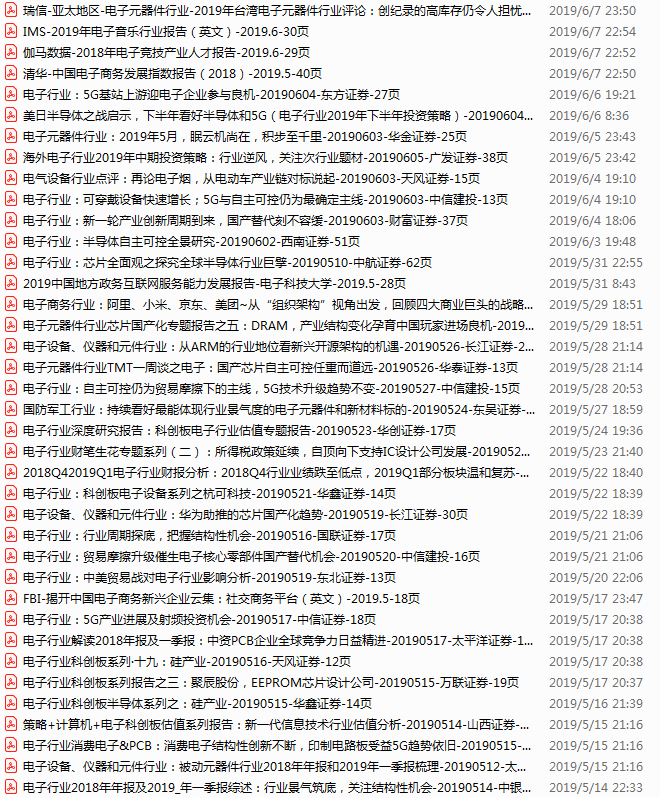 电子行业资料包,月度新增52份(2019.6.10-7.5)