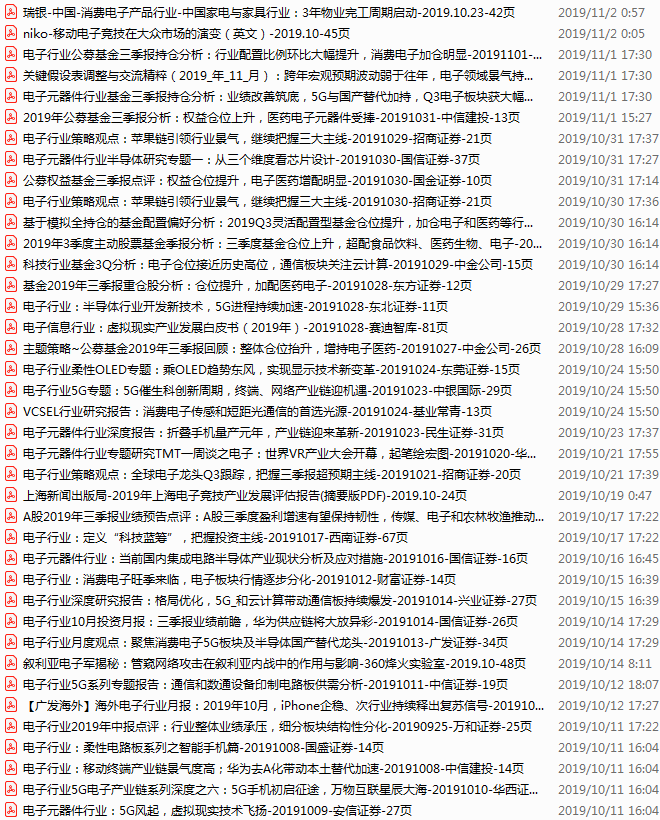 电子行业资料包,月度新增46份(2019.10.4-11.1)