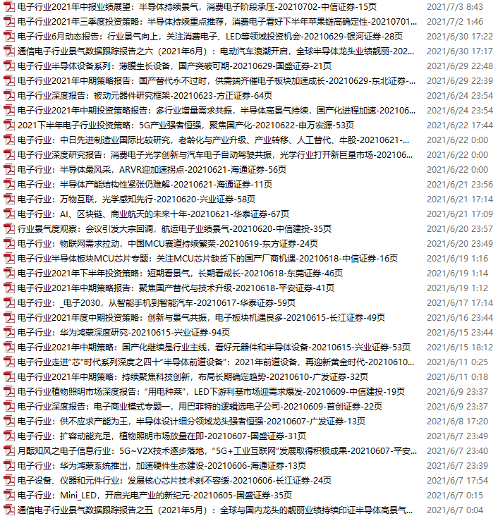 电子行业资料包,月度新增35份(2021.6.5-7.3)