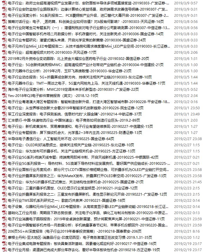电子行业资料包,月度新增66份(2019.2.11-3.10)
