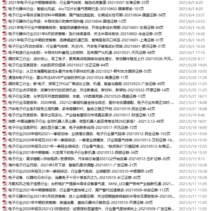 电子行业资料包,月度新增34份(2021.5.8-6.5)