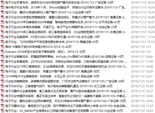 电子行业资料包,月度新增54份(2019.11.1-11.30)