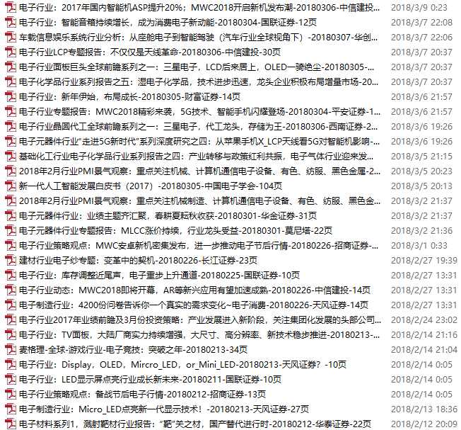 电子行业资料包,月度新增29份(2018.2.10-3.12)