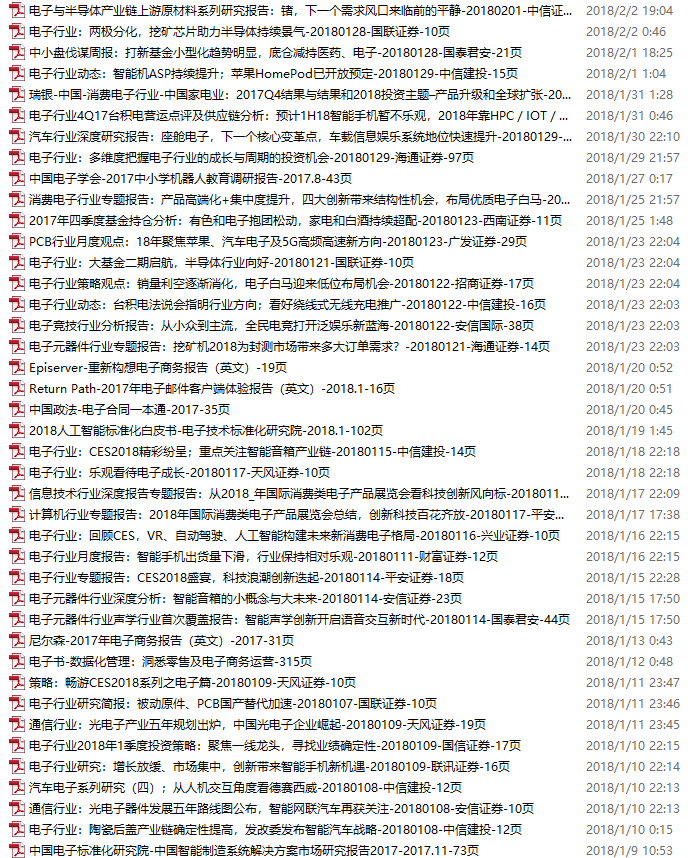 电子行业资料包,月度新增49份(2018.1.8-2.10)