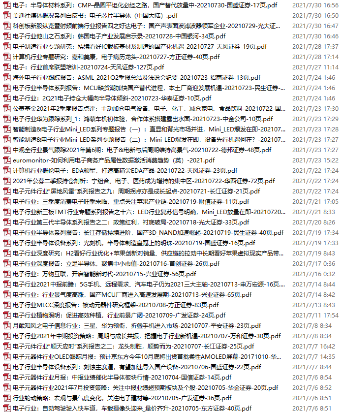 电子行业资料包,月度新增40份(2021.7.3-7.31)