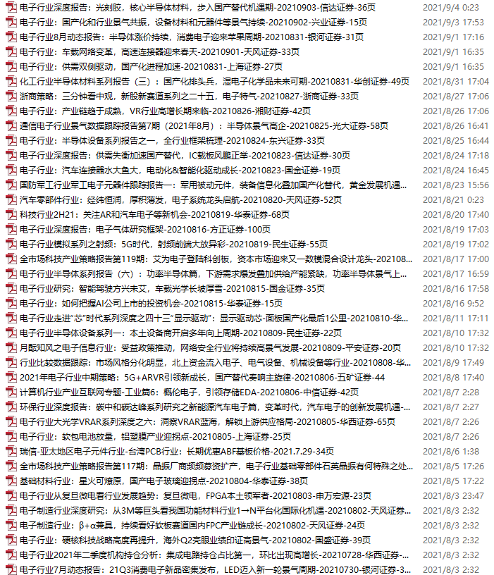 电子行业资料包,月度新增17份(2021.9.4-10.16)