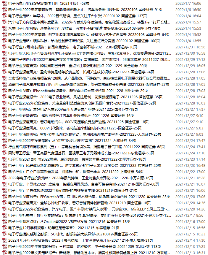 电子行业资料包,月度新增44份(2021.12.11-2022.1.8)