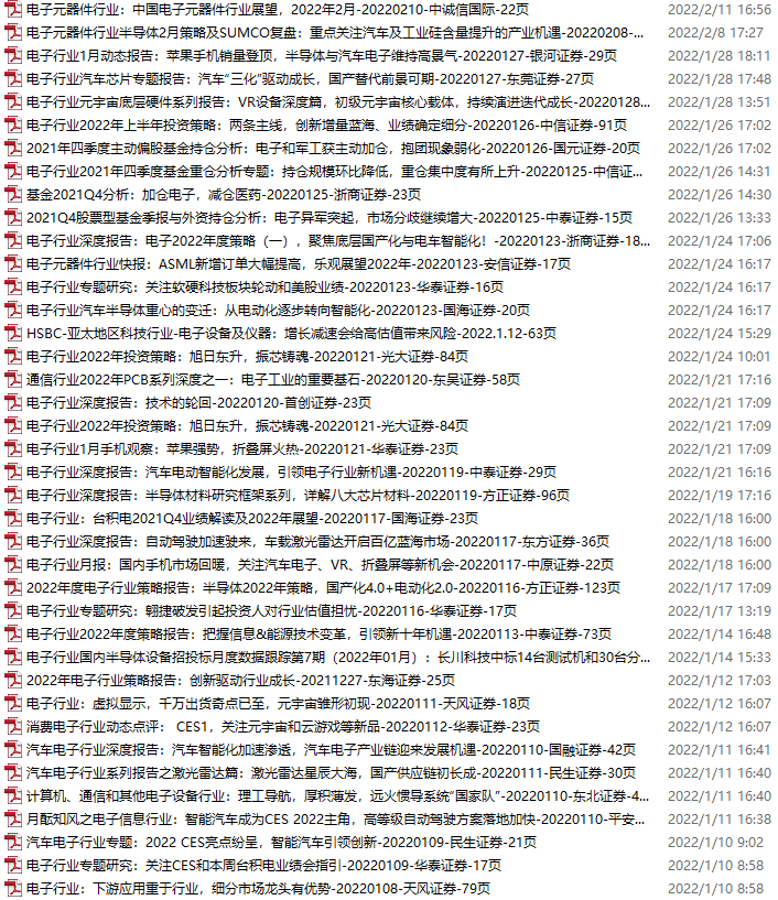 电子行业资料包,月度新增39份(2022.1.8-2.12)