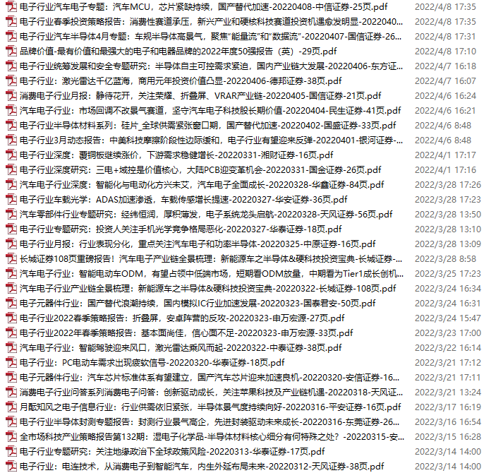 电子行业资料包,月度新增32份(2022.3.12-4.9)