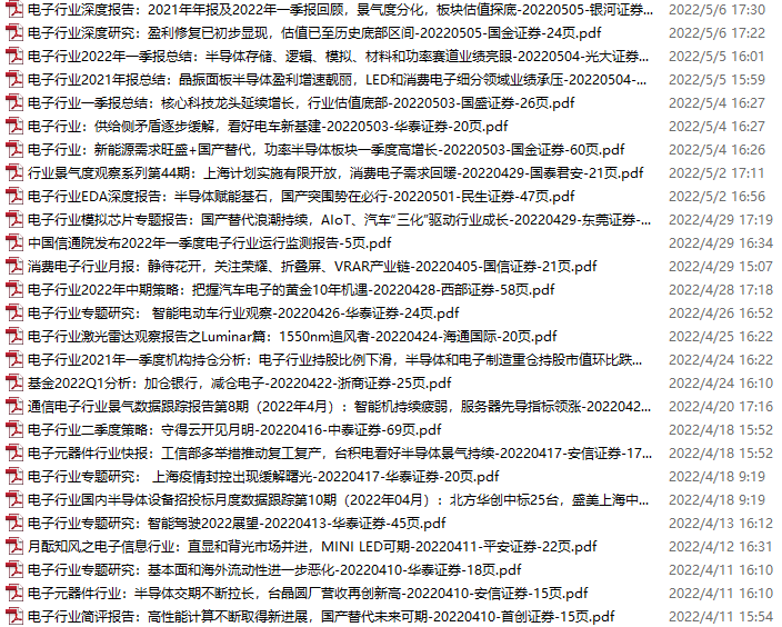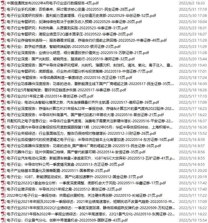 电子行业资料包,月度新增38份(2022.5.7-6.4)