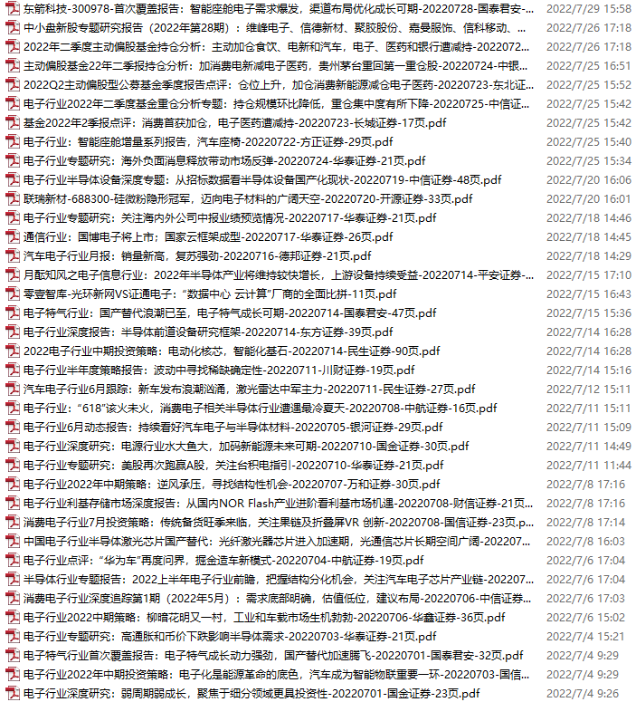 电子行业资料包,月度新增40份(2022.6.4-7.2)