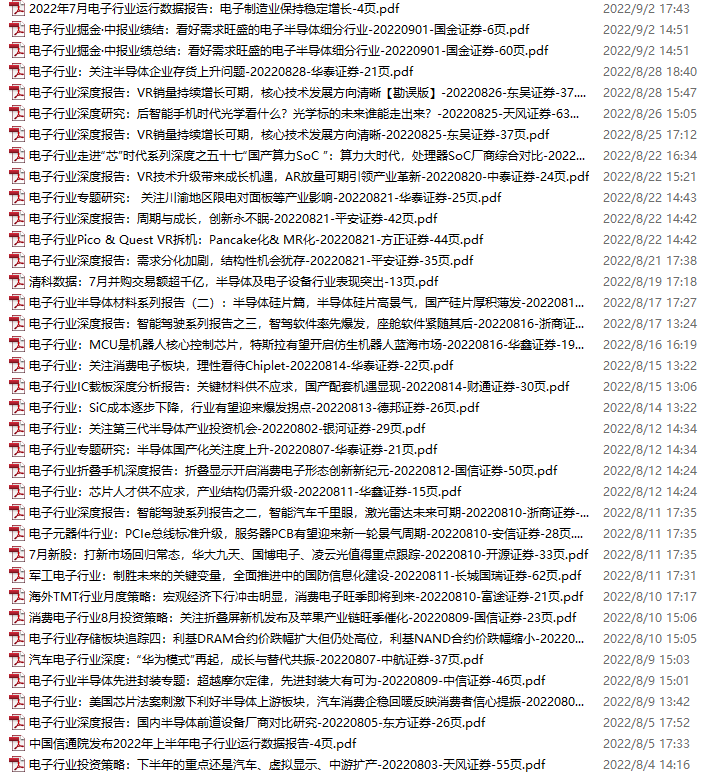 电子行业资料包,月度新增43份(2022.7.30-9.3)