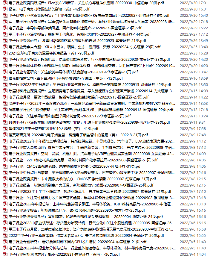 电子行业资料包,月度新增41份(2022.9.3-10.8)