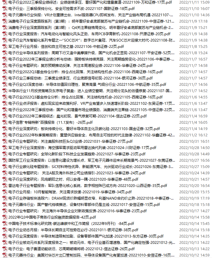 电子行业资料包,月度新增45份(2022.10.8-11.12)
