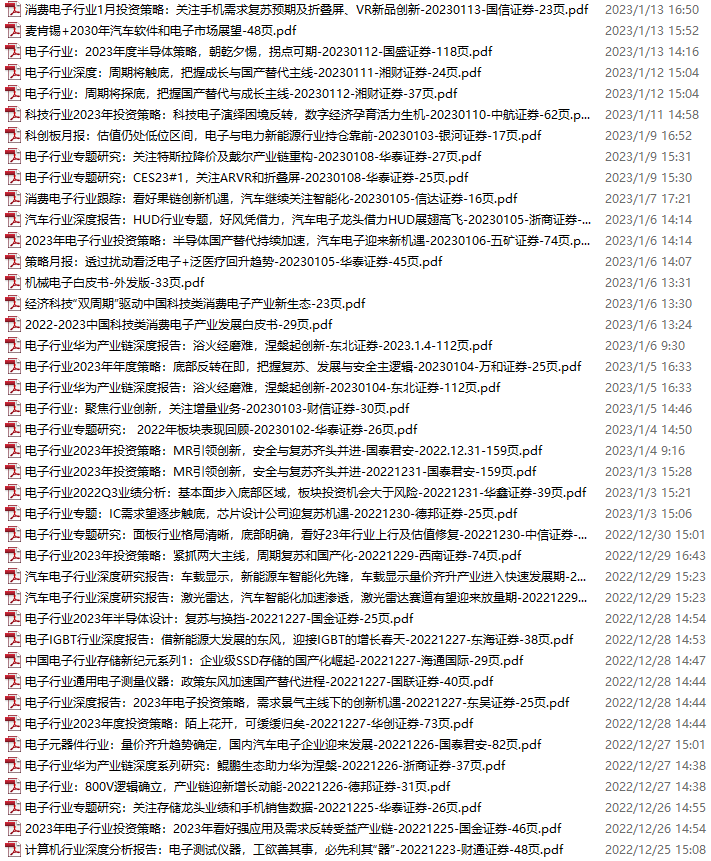电子行业资料包,月度新增51份(2022.12.17-2023.1.14)