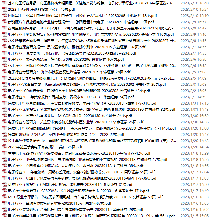 电子行业资料包,月度新增33份(2023.2.11-3.11)