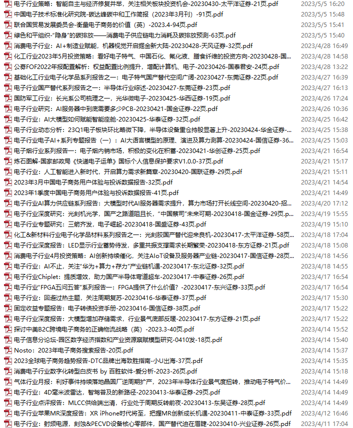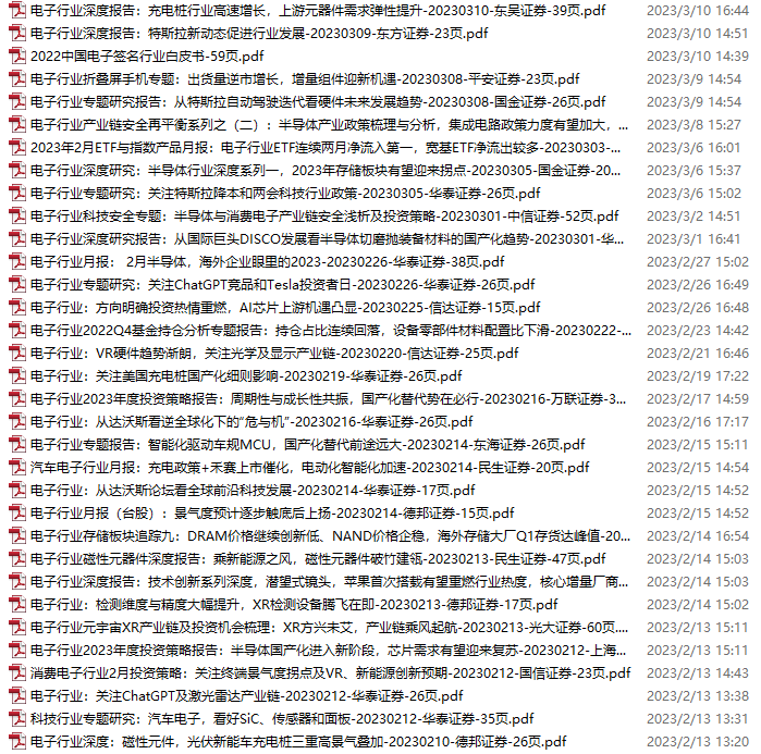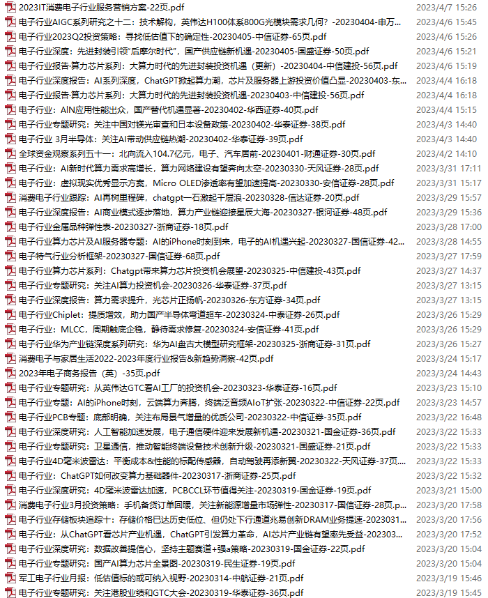 电子行业资料包,月度新增50份(2023.3.11-4.8)