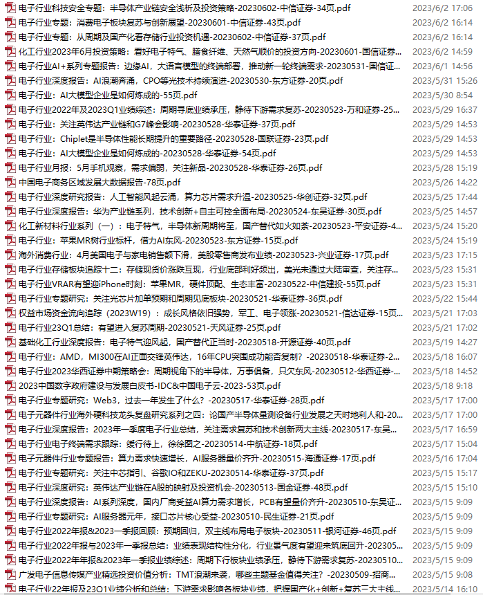 电子行业资料包,月度新增61份(2023.6.3-7.8)