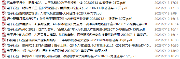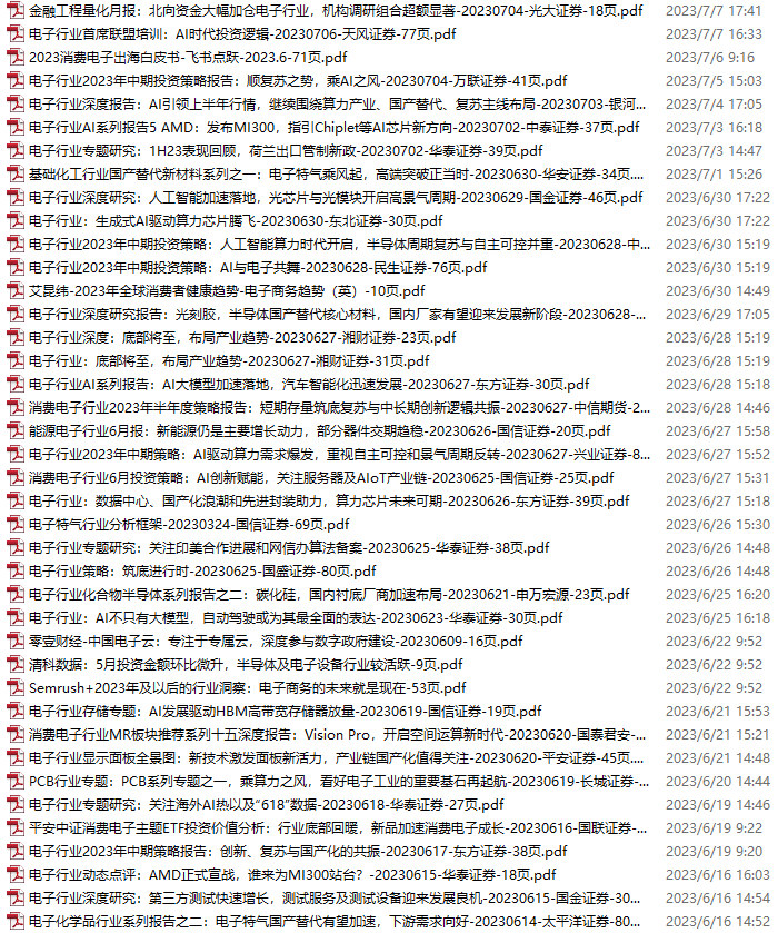 电子行业资料包,月度新增52份(2023.7.8-8.5)