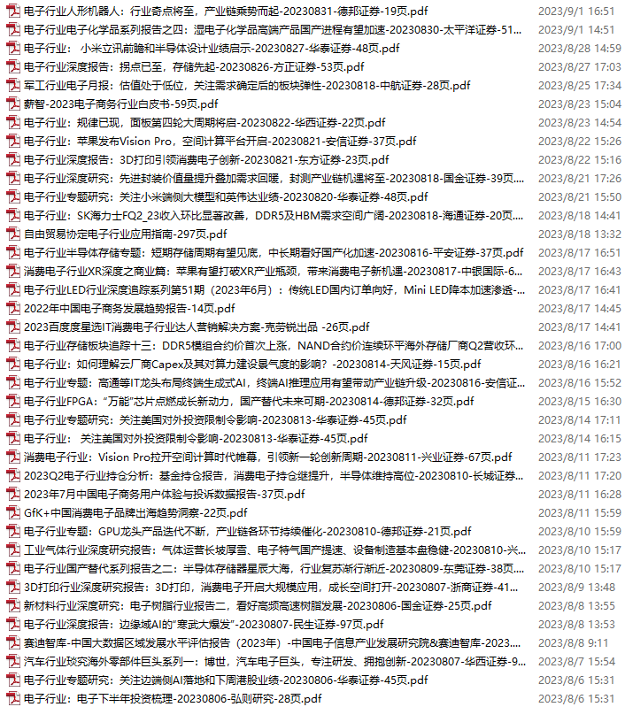 电子行业资料包,月度新增19份(2023.9.2-10.8)