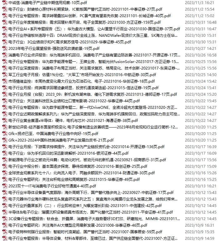 电子行业资料包,月度新增37份(2023.10.8-11.4)