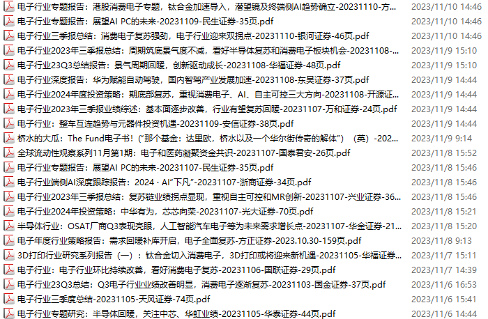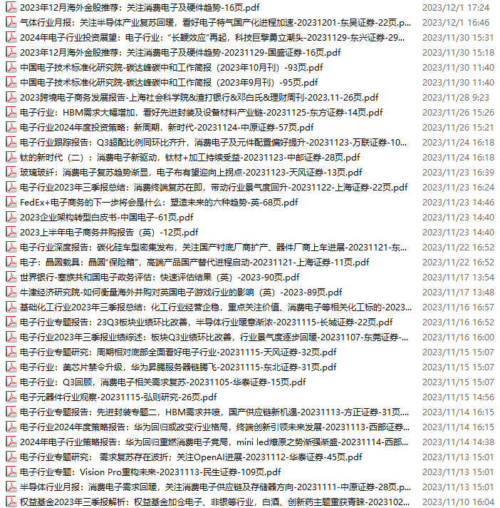 电子行业资料包,月度新增56份(2023.11.4-12.2)