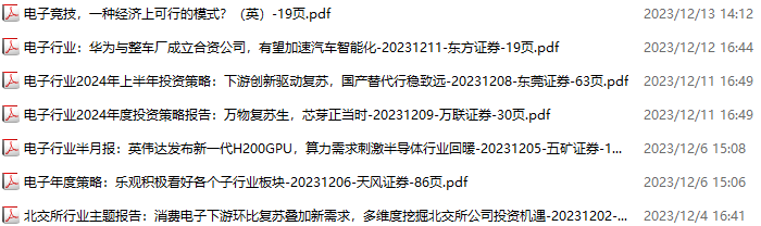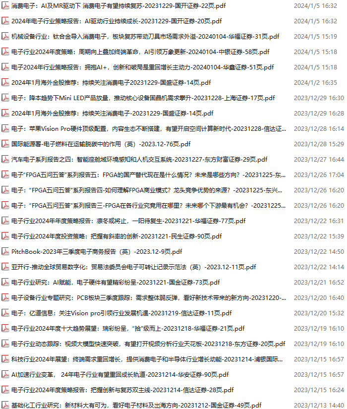 电子行业资料包,月度新增34份(2023.12.2-2024.1.6)