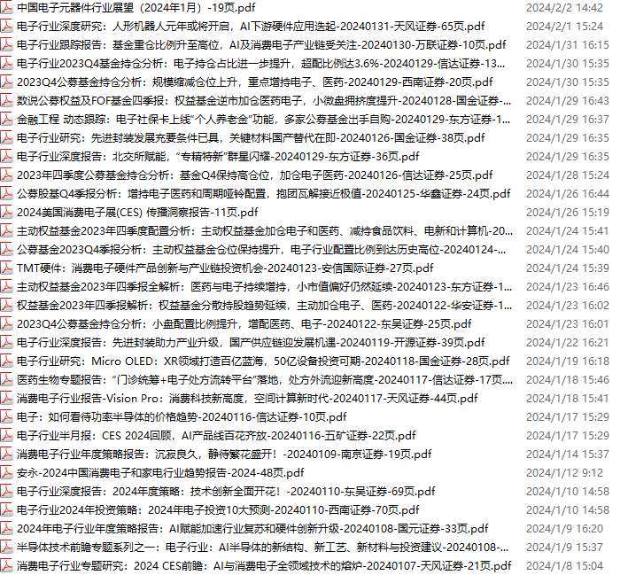电子行业资料包,月度新增31份(2024.1.6-2024.2.3)