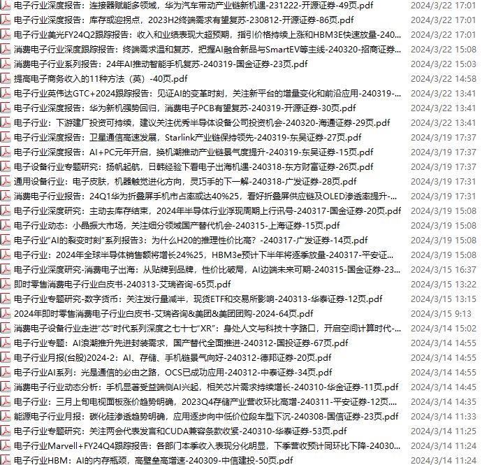 电子行业资料包,月度新增32份(2024.3.9-2024.3.23):