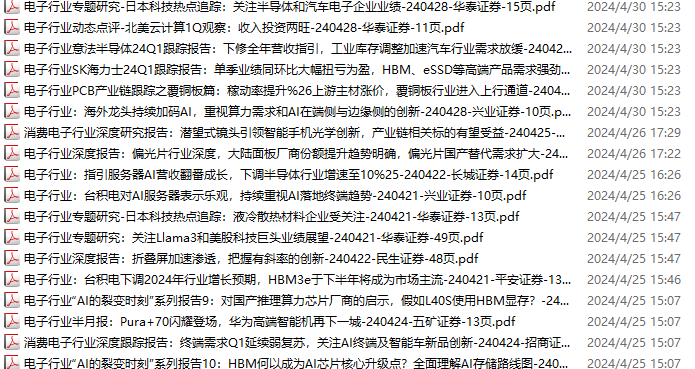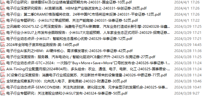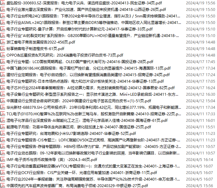 电子行业资料包,月度新增45份(2024.3.23-2024.4.20):