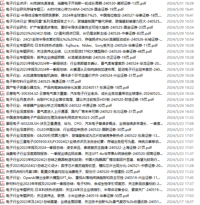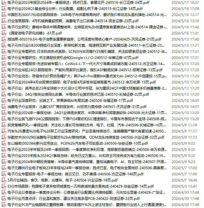 电子行业资料包,月度新增86份(2024.4.20-2024.6.1):