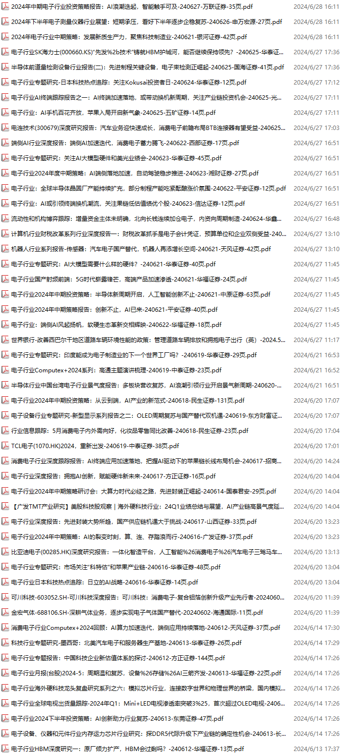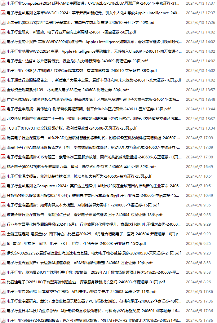 电子行业资料包,月度新增85份(2024.6.1-2024.6.29):