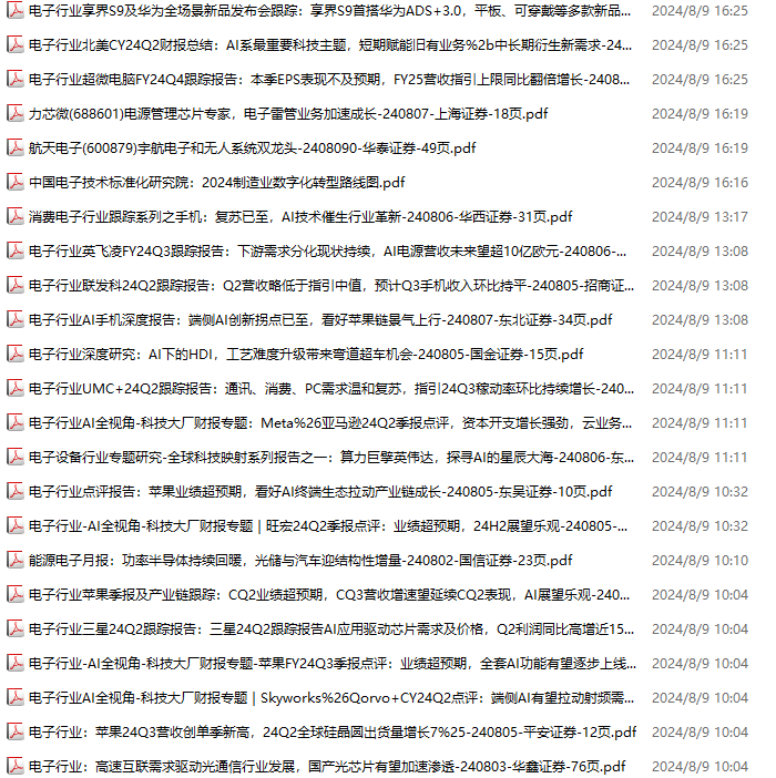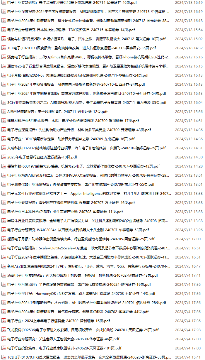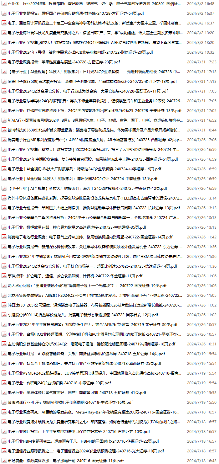 电子行业资料包,月度新增88份(2024.6.29-2024.8.3):