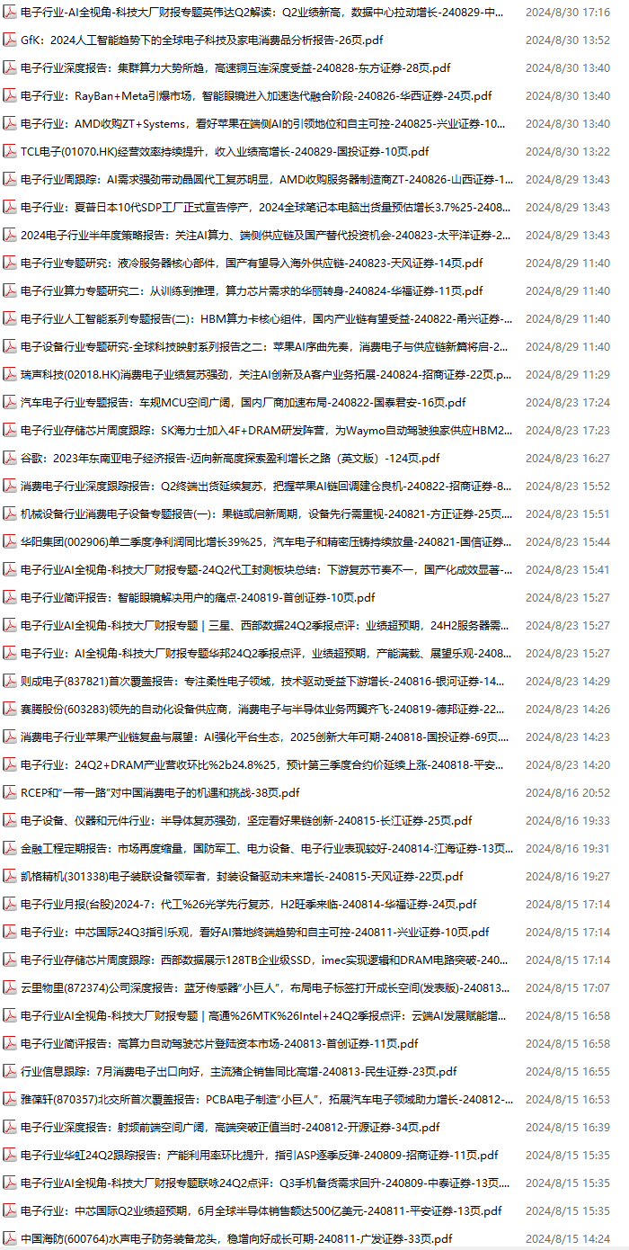 电子行业资料包,月度新增58份(2024.8.31-2024.10.6):
