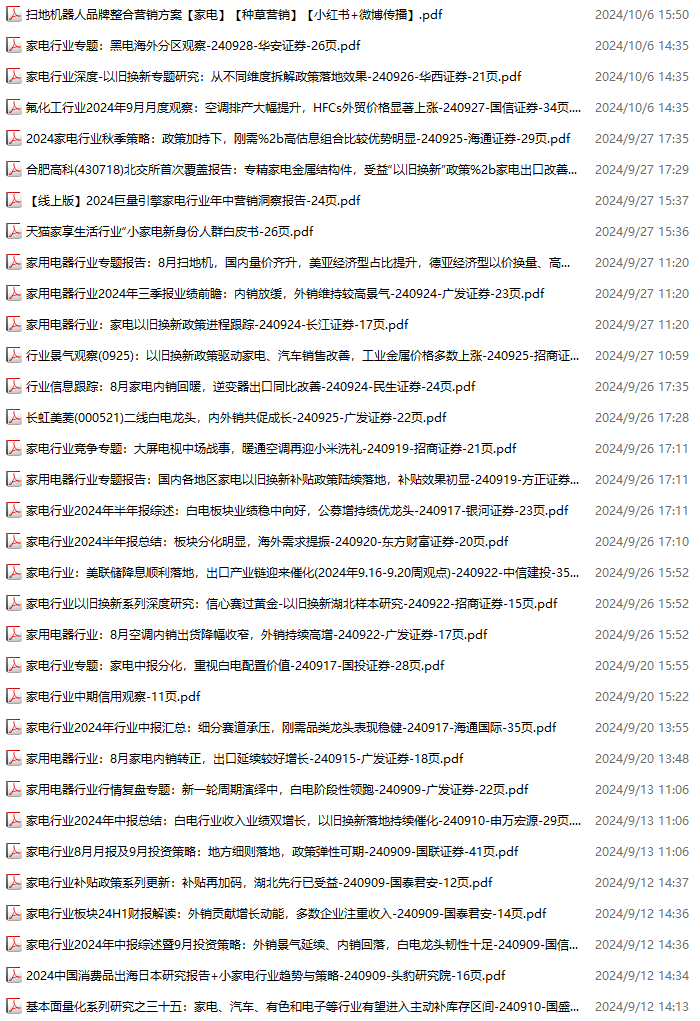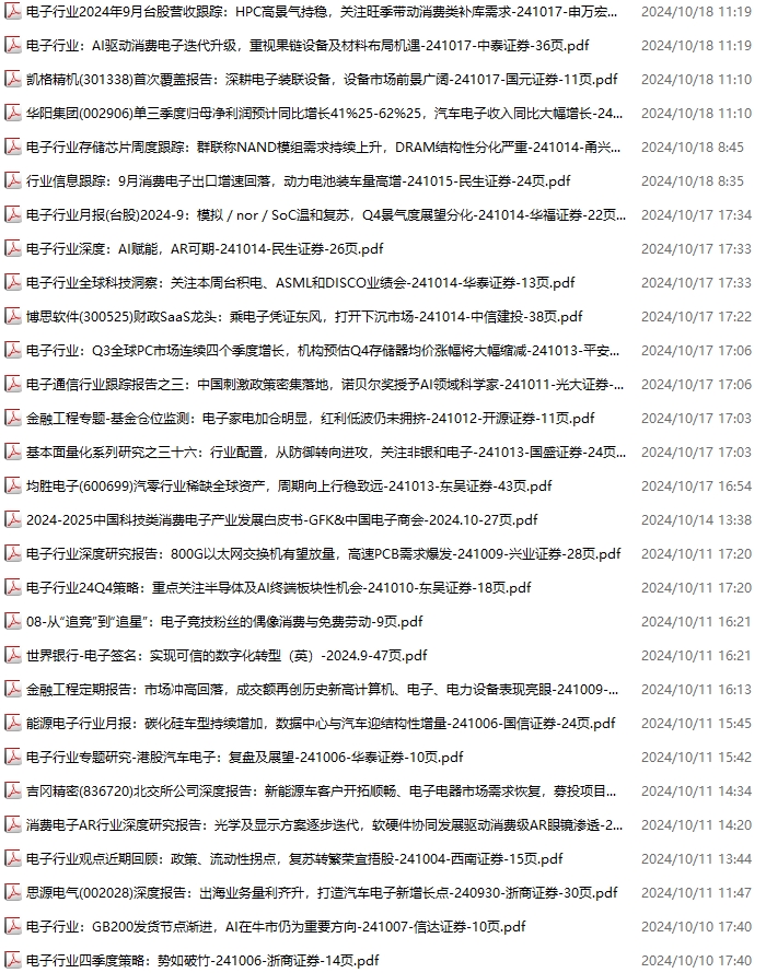 电子行业资料包,月度新增67份(2024.10.5-2024.11.2):