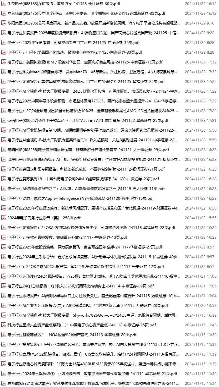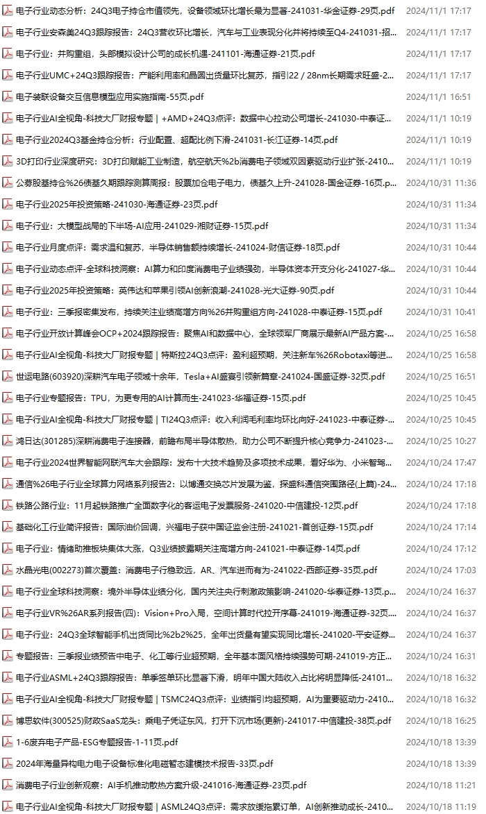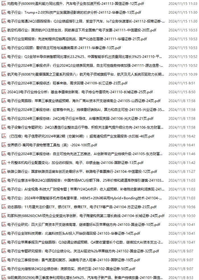 电子行业资料包,月度新增72份(2024.11.2-2024.11.30):
