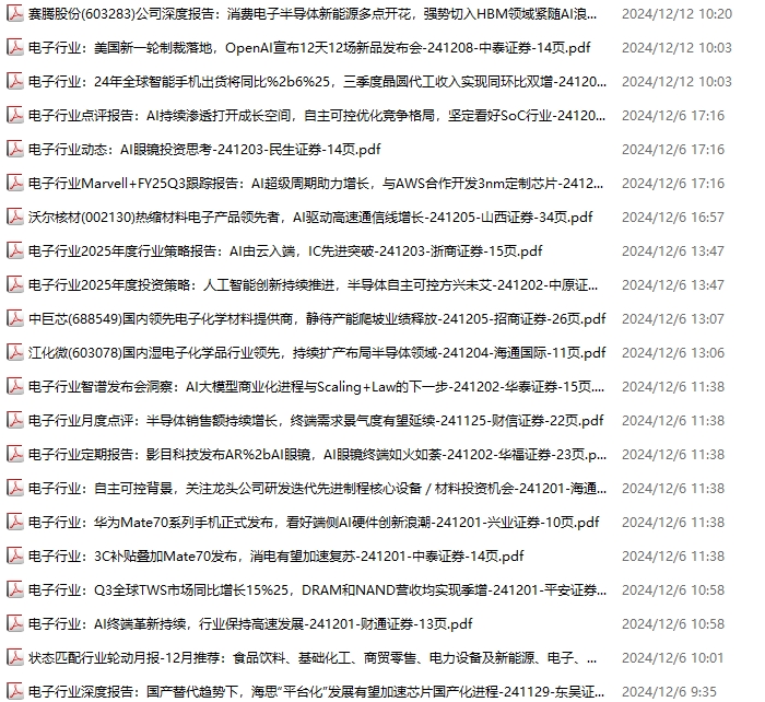 电子行业资料包,月度新增69份(2024.11.30-2025.1.4):