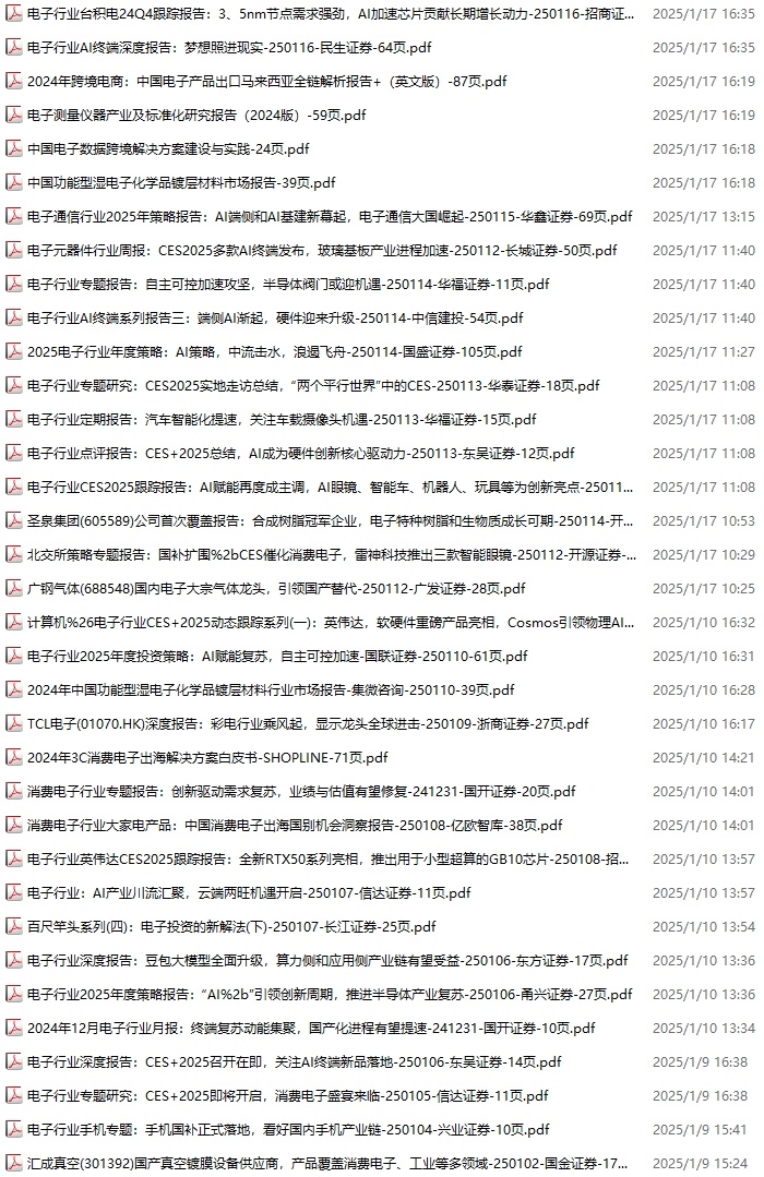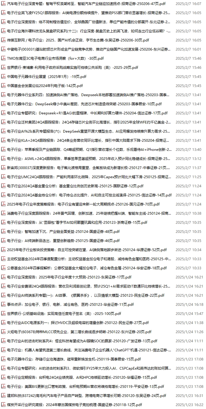 电子行业资料包,月度新增80份(2025.1.4-2025.2.8):