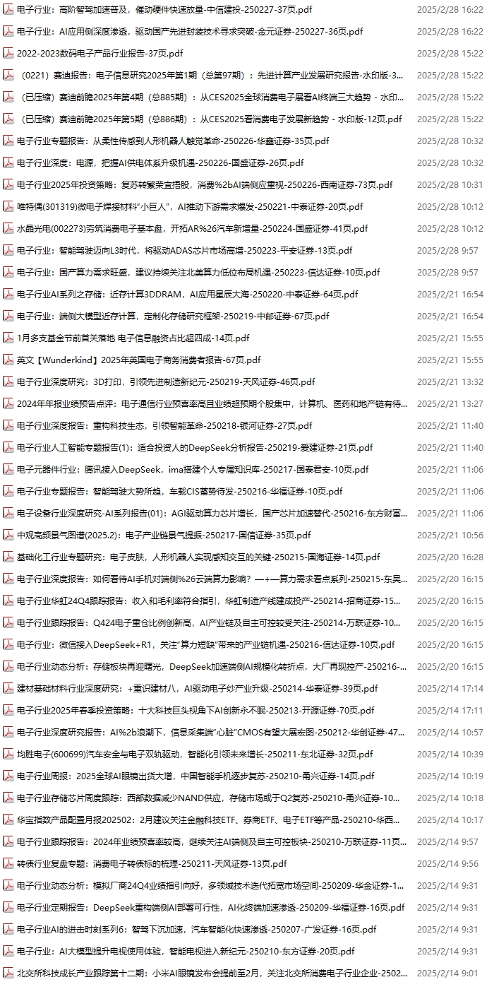 电子行业资料包,月度新增45份(2025.2.8-2025.3.1):