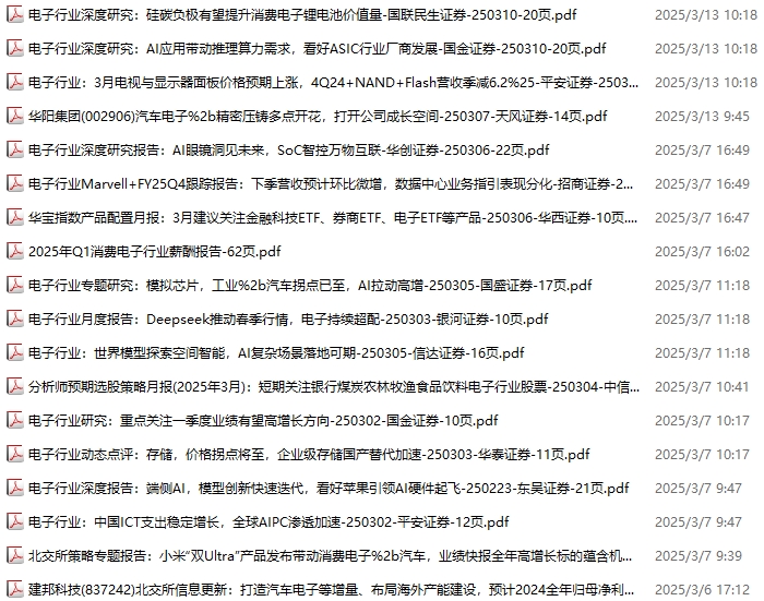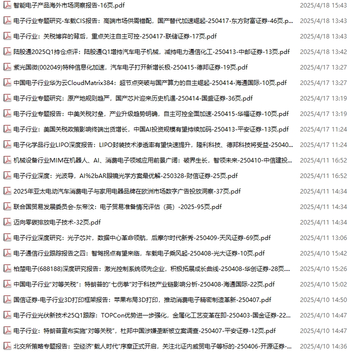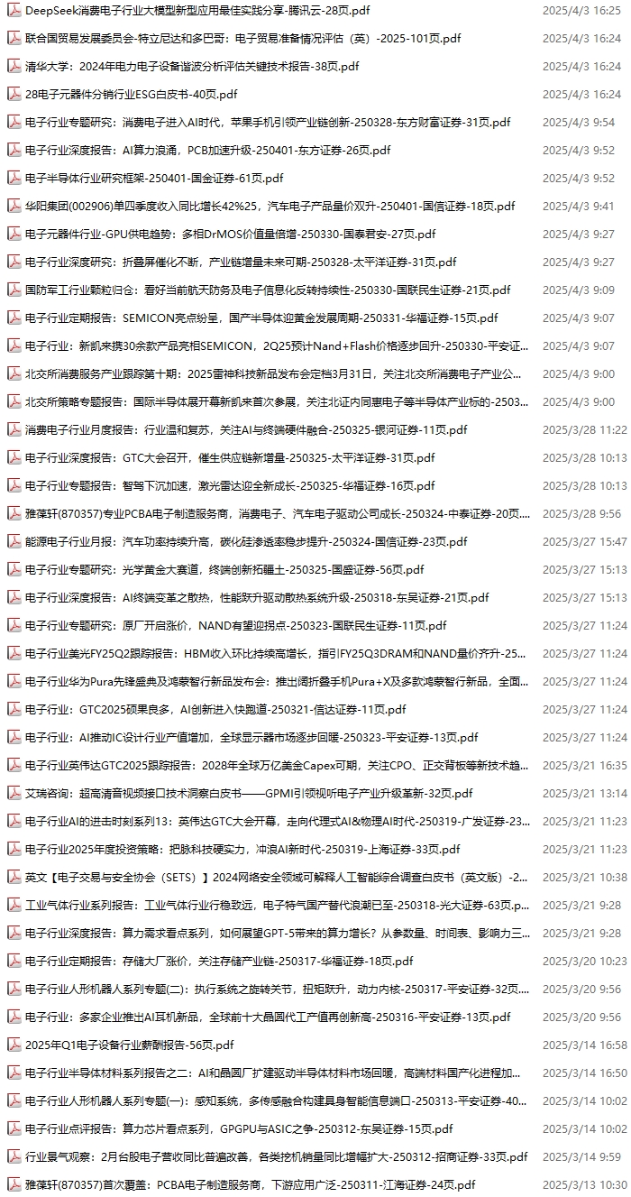 电子行业资料包,月度新增61份(2025.3.1-2025.4.4):