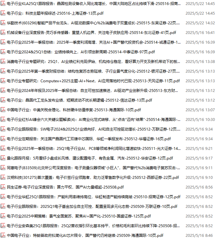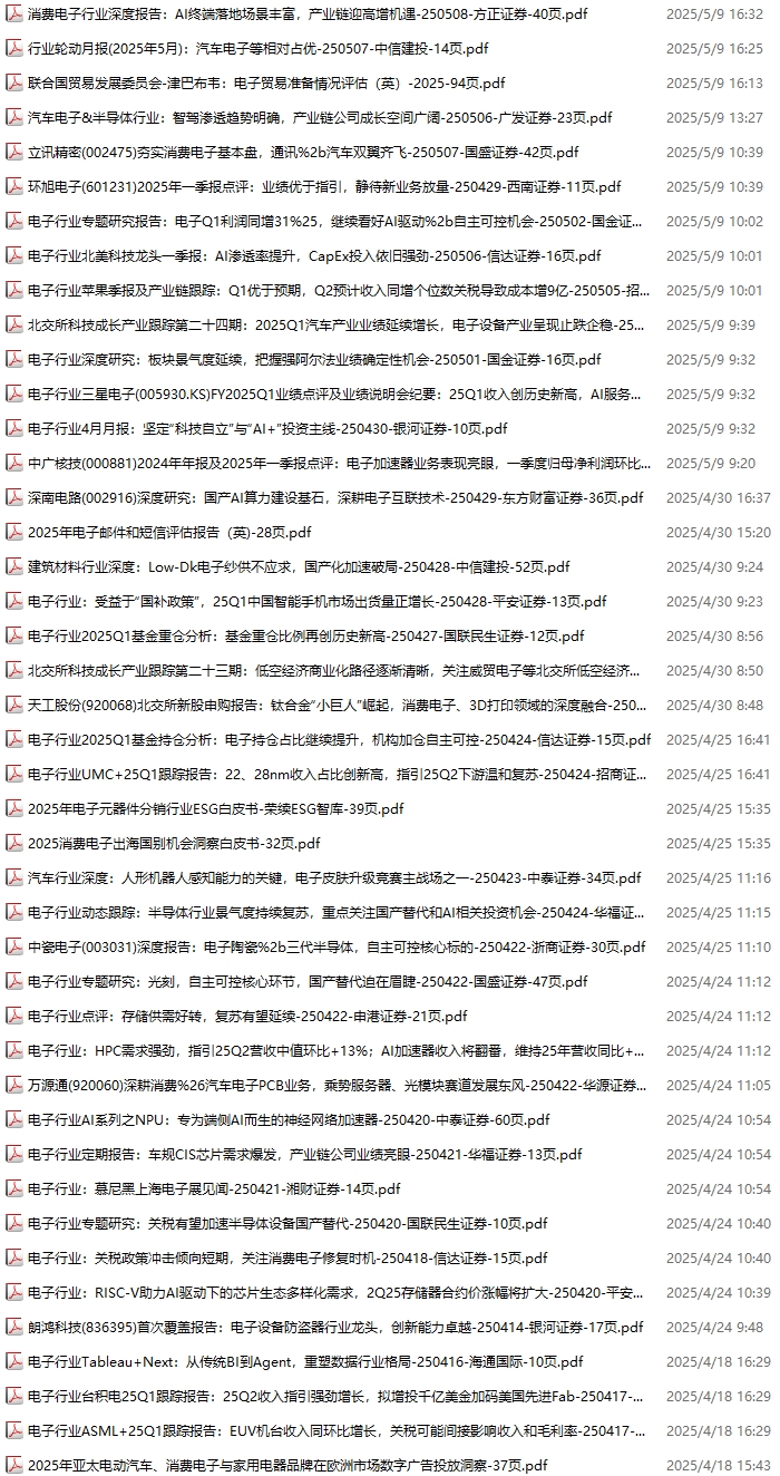 电子行业资料包,月度新增66份(2025.4.4-2025.5.10):
