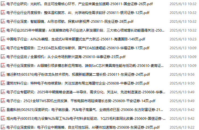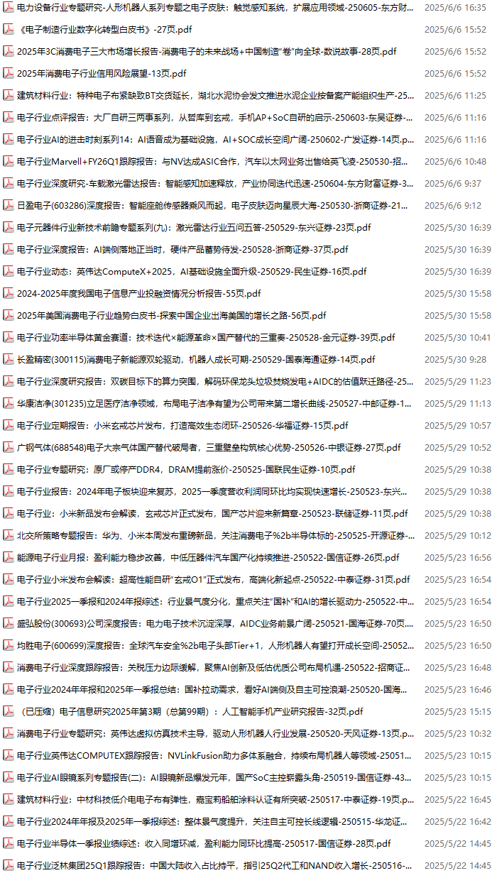 电子行业资料包,月度新增65份(2025.5.10-2025.6.6):