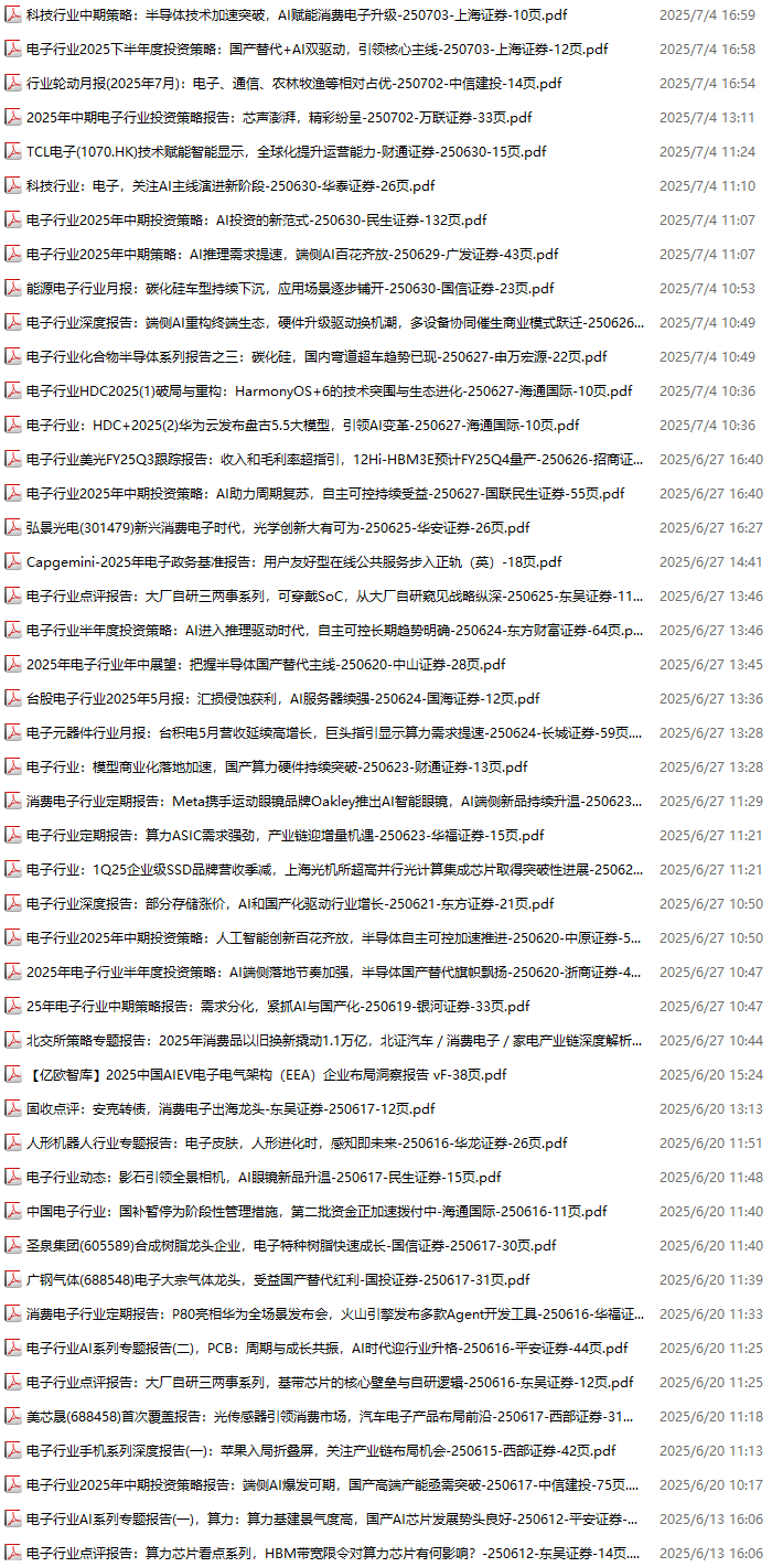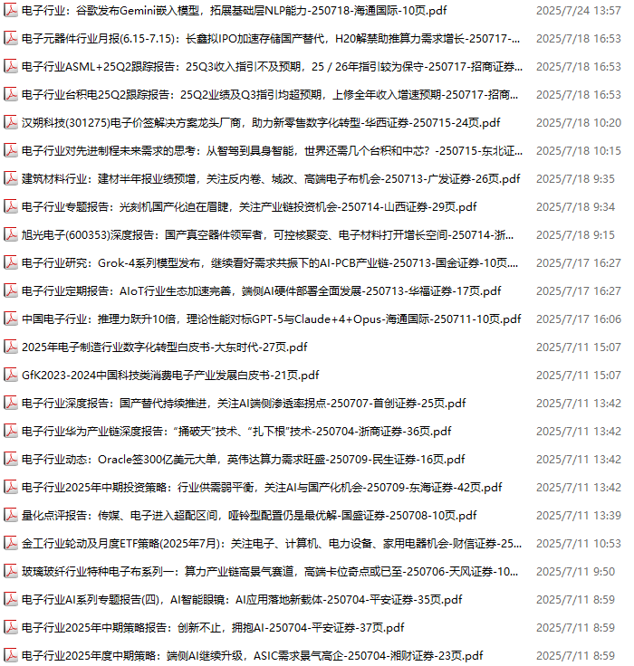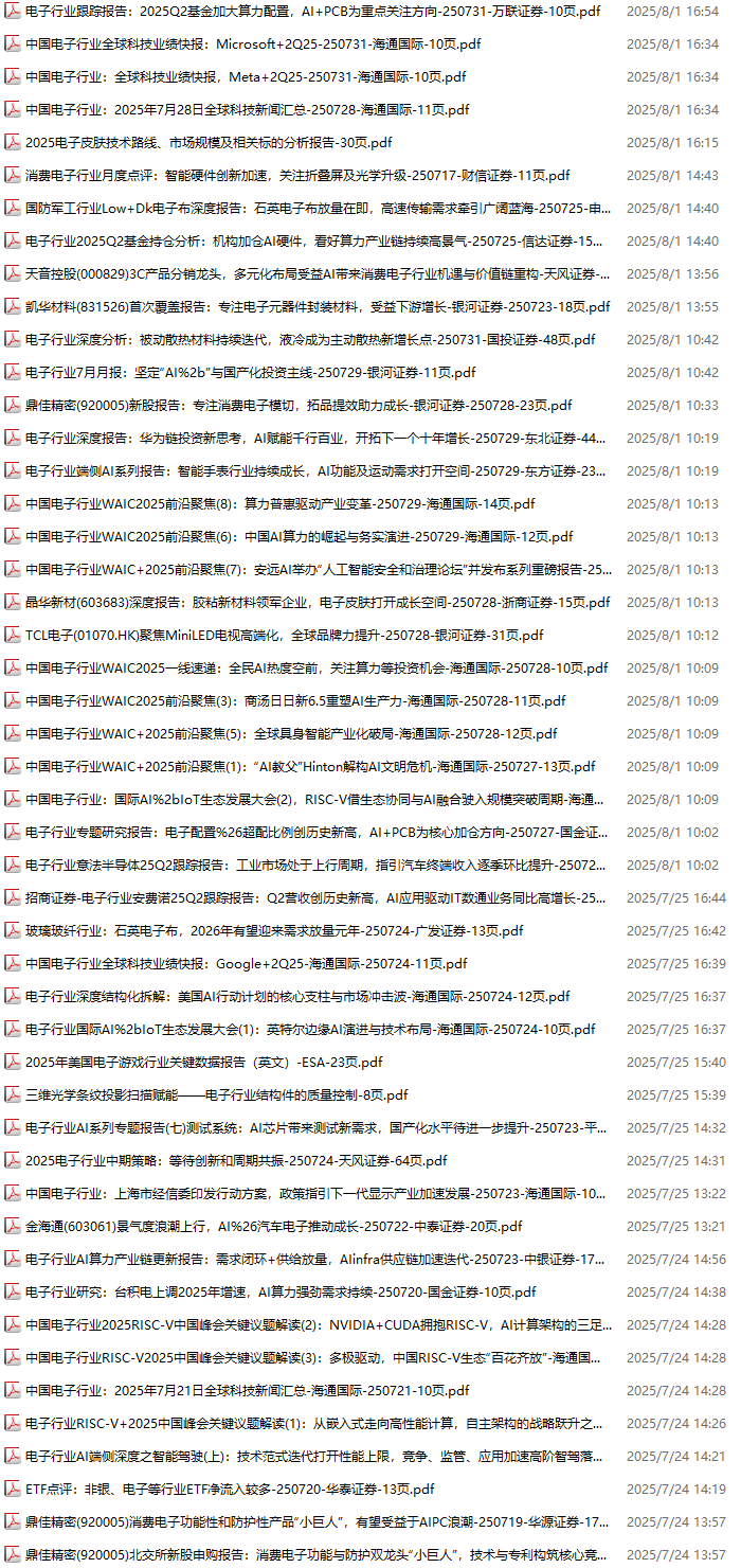 电子行业资料包,月度新增72份(2025.7.4-2025.8.1):